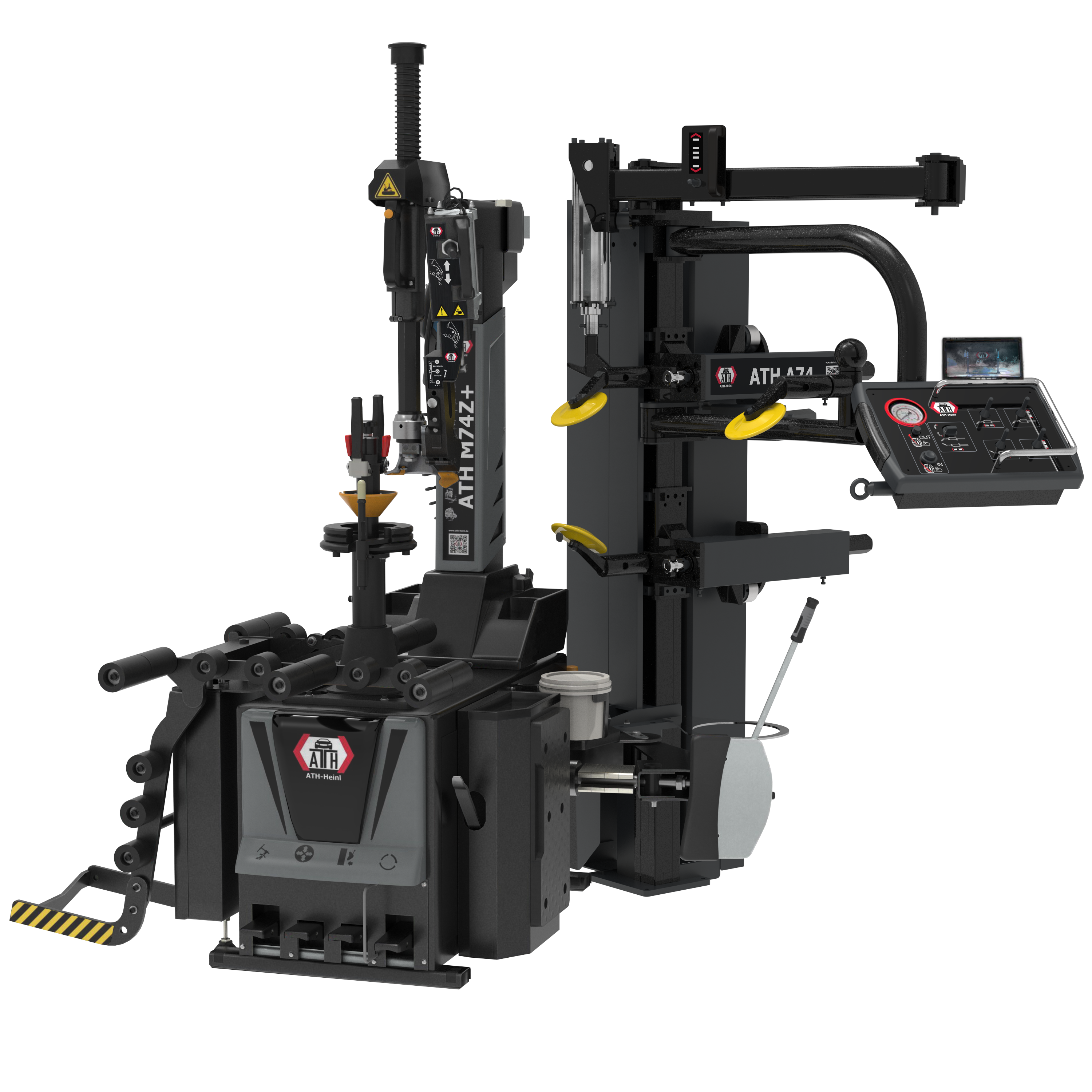 Die ATH M74Z Plus ist die moderne Reifenmontiermaschine für maximale Effizienz. Der neue Hilfsmontagearm A74 mit zusätzlicher Abdrückfunktion erleichtert die Arbeit erheblich. Die integrierte Kamera im Hilfsarm zeigt die Radunterseite direkt am Bedienteil für volle Kontrolle. Die höhenverstellbare Mittellochaufnahme mit Spannflansch und Schnellspannmutter sorgt für präzises Spannen. Ideal für Werkstätten, die Wert auf Geschwindigkeit und Komfort legen.